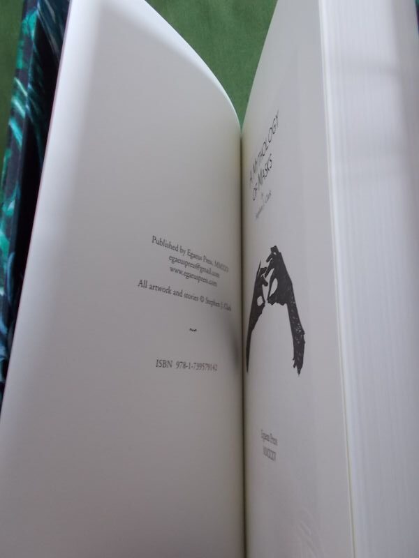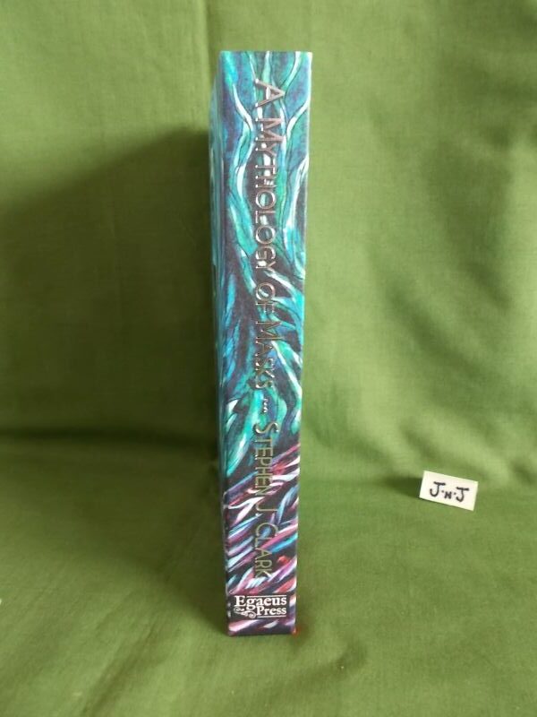 A Mythology of Masks contains ten uncollected stories and one new and previously unpublished piece, as well as numerous specially produced illustrations, a colour cover and two different endpapers by Clark.