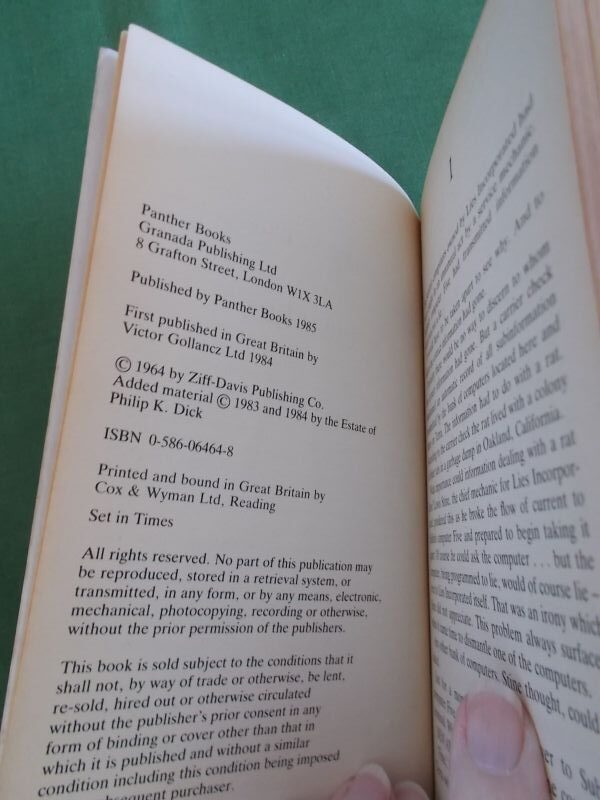 If the humans teleported to the colony on the planet of Whale’s Mouth are living in the dream world shown on the vid reports, why can’t the Lies. Inc security force get any reply from their agents who have made the (strictly one-way) trip to Whale’s Mouth? And why are THL, who control the telpor transportation system desperate to stop Rachmael ben Applebaum from flying a spaceship to Whales’ Mouth?”
