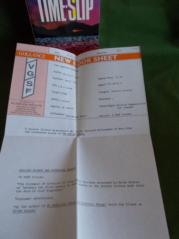 This is a first printing of the Gollancz edition in their VGSF Classics series. Comes complete with the publisher’s publicity handout.