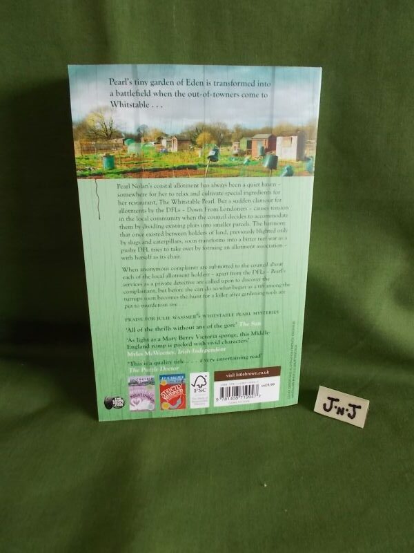 When anonymous complaints are submitted to the council about each of the local allotment holders – apart from the DFLs – Pearl’s services as a private detective are called upon to discover the complainant, but before she can do so what begins as a tiff among the turnips soon becomes the hunt for a killer after gardening tools are put to murderous use…”
