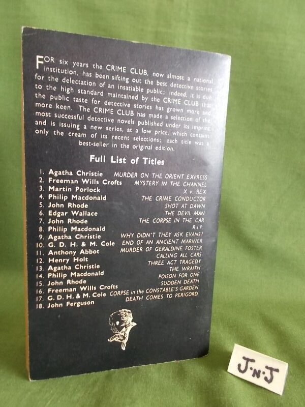 Age tanning to pages. Slight slant to spine which also has reading creases. The covers are showing signs of wear to the extremities: rubbed/chipped at edges and at base of spine. They are also rather grubby. Light diagonal crease across the top right-hand corner of the front cover and a small crease at the bottom. Tiny crease across the top left-hand corner of rear cover and another running from the spine to the lower edge. At the top of the very last page (advertising page) someone has written nearly -E-T-M-.