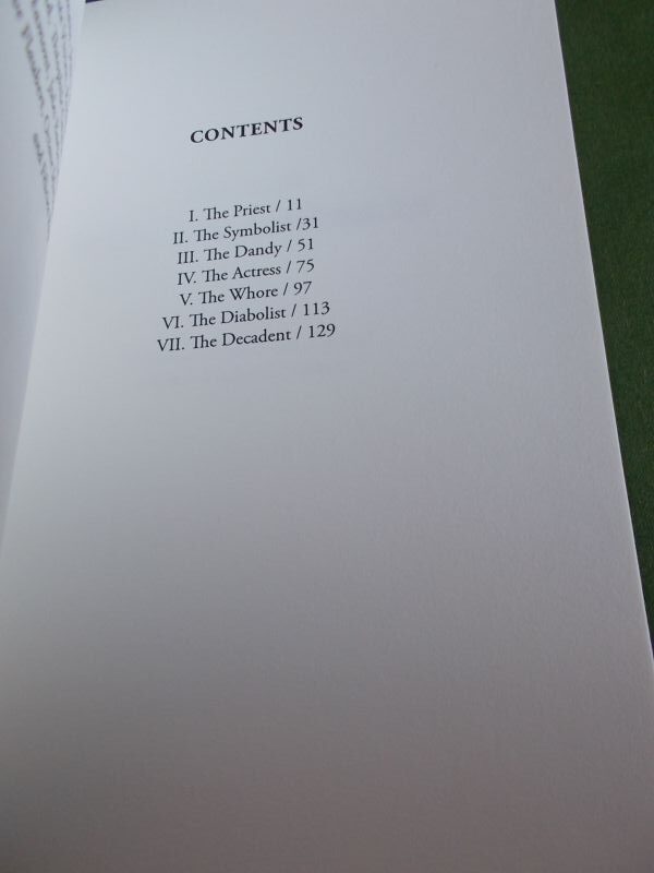 SYNOPSIS: “Over the course of 24 hours, on a Spring day in Paris in 1893, seven archetypal figures of the “Yellow Nineties” – a priest, a Symbolist, a dandy, an actress, a whore, a diabolist, and a Decadent – drift into and out of each other’s lives, sometimes taking center stage, other times assuming bit parts. The resulting narrative mosaic created by these seven interwoven tales can thus be described as both the summation and the reflection of late 19th-century Parisian Decadentism re-mannered as a Neo-Decadent novel.”