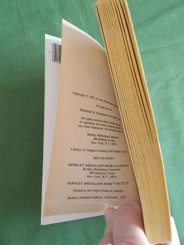 This is a first printing of the Berkley Medallion edition with a stated First Berkley Medallion edition January 1977. Age tanning to pages making them rather brown but still eminently readable. The number 8 has been stamped across the top and bottom page edges, not affecting text. The covers are showing some slight signs of wear to the extremities; some slight rubbing.. There is a small nick and crease on edge of rear cover and a tiny crease at the bottom of the front cover.. They were once covered with a plastic film and this has left a darker patch on the rear cover and some slight marks on the first and last page. There is also a sticker on the inside of the front cover.