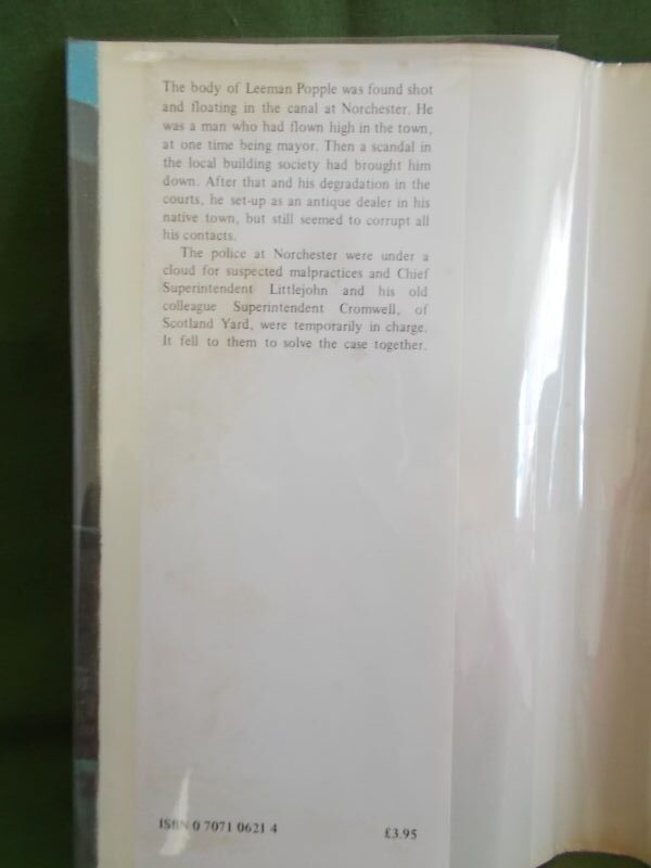 SYNOPSIS: “The body of Leeman Popple was found shot and floating in the canal at Norchester. He was a man who had flown high in the town, at one time being mayor. Then a scandal in the local building society had brought him down. After that and his degradation in the courts, he set-up as an antique dealer in his native town, but still seemed to corrupt all his contacts.