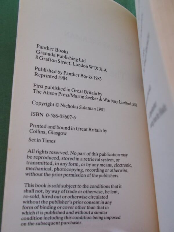 A UK paperback originally published in this edition in 1983; this is a reprint from 1984. Author’s first novel.