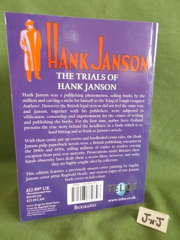 SYNOPSIS: “Hank Janson was the pseudonym of Stephen D Frances. Hank Janson was a publishing phenomenon, selling books by the million and carving a niche for himself as the ‘King of Tough Gangster Authors’. However, the British legal system did not feel the same way and Janson, together with his publishers, were subjected to vilification, censorship and imprisonment for the crimes of writing and publishing the books. For the first time, author Steve Holland presents the true story behind the headlines, in a book which is as hard hitting and as frank as Janson’s novels.
