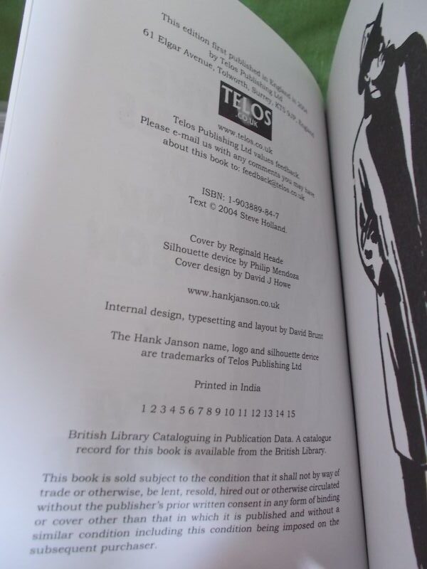 A first UK edition trade (larger-sized) paperback with a full 1 to 15 number sequence (a Telos peculiarity) indicating a first printing.