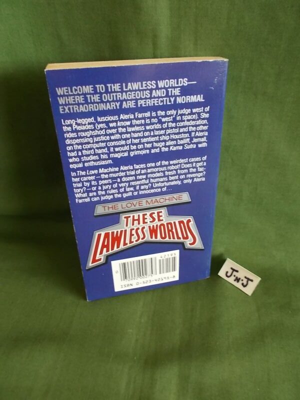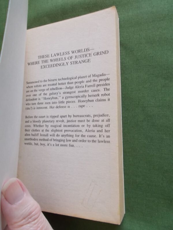 Long-legged, luscious Aleria Farrell is the only judge west of the Pleiades (yes we know there is no “west” in space). She rides roughshod over the lawless worlds of the confederation, dispensing justice with one hand on a laser pistol and the other on the computer console of her sentient ship Houston. If Aleria had a third hand, it would be on her huge alien bailiff, Jemall, who studies his magical grimoire and the Kama Sutra with equal enthusiasm.
